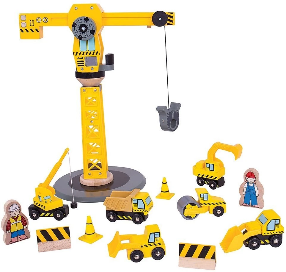 Bigjigs Rail Baukran Mit 6 Baufahrzeugen