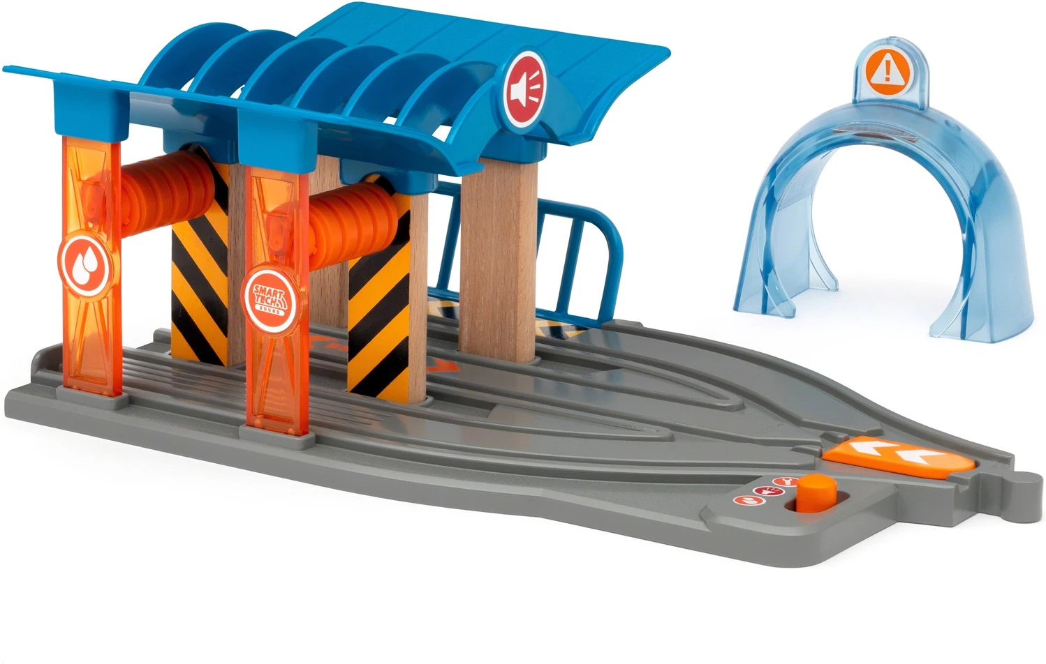 Manche Reparaturen lassen sich nicht umgehen und so manche Spielzeug-Eisenbahn muss ab und zu auch richtig geschrubbt werden. Glücklicherweise bietet die 33975 Smart Tech Sound Waschstraße mit Werkstatt hierfür den Komplettservice. Fährt die 33971 Smart Tech Sound Lok mit Aufnahmefunktion (nicht enthalten) durch die Werkstatt werden alle Funktion ausgelöst und dein Eisenbahn-Spiel wird noch spannender. Schicke die Lok nach links für eine Reinigung in der Waschanlage, nach rechts zur Inspektion in die Werkstatt oder geradeaus, wenn kein Service notwendig ist. Die Smart Tech Sound Lok (nicht enthalten) wird automatisch durch realistische Bahngeräuschen und -animationen lebendig und mit der Smart Tech Sound-App kann dein Spiel noch weiter angepasst werden.