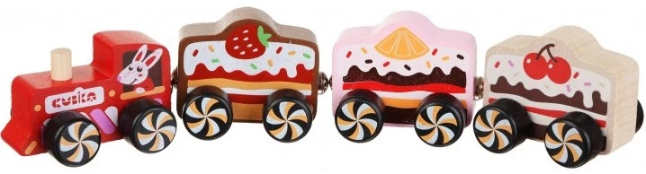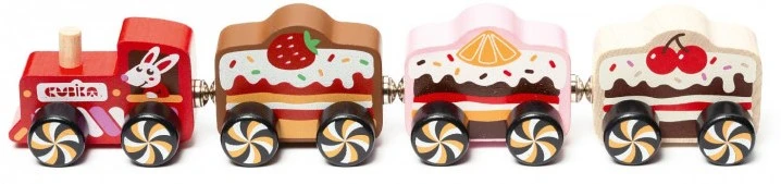 Cubika 15382 15351-Tren Pastelería de Madera Kinderspielzeug aus Holz, Mehrfarbig
