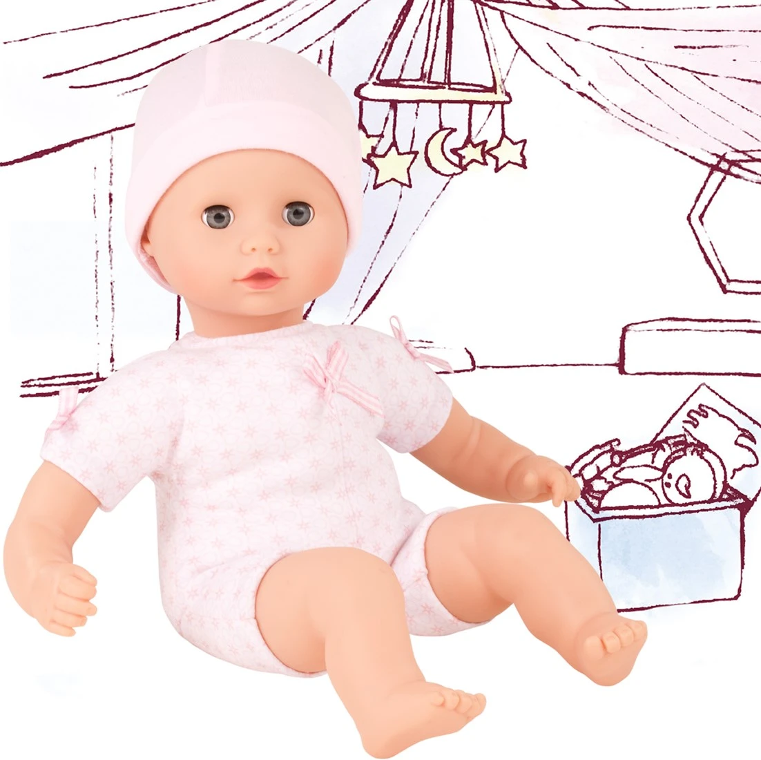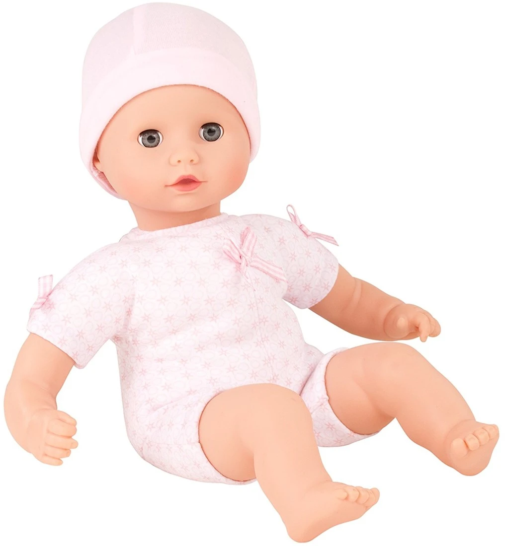 Götz 1320590 Muffin to Dress Mädchen Puppe – 33 cm große Babypuppe mit blauen Schlafaugen, ohne Haare mit Mütze – Weichkörper-Puppe ab 18 Monaten