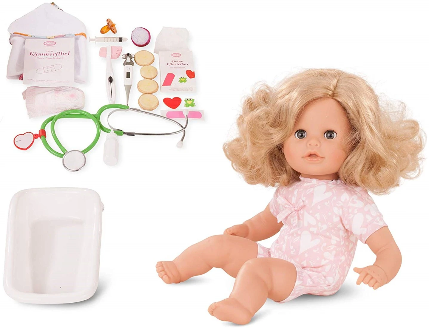 Götz 1816063 Cosy Aquini als Doktor Badepuppe – Puppe mit blonden Haaren, blauen Schlafaugen in einem 47-teiligen Set – 33 cm Mädchen-Babypuppe