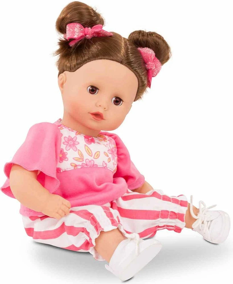 Götz 2120945 Muffin Stripe Vibes Kiss Puppe – 33 cm große Babypuppe mit braunen Schlafaugen, braune Haare und Weichkörper – Weichkörperpuppe in 7-teiligen Set