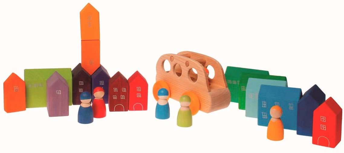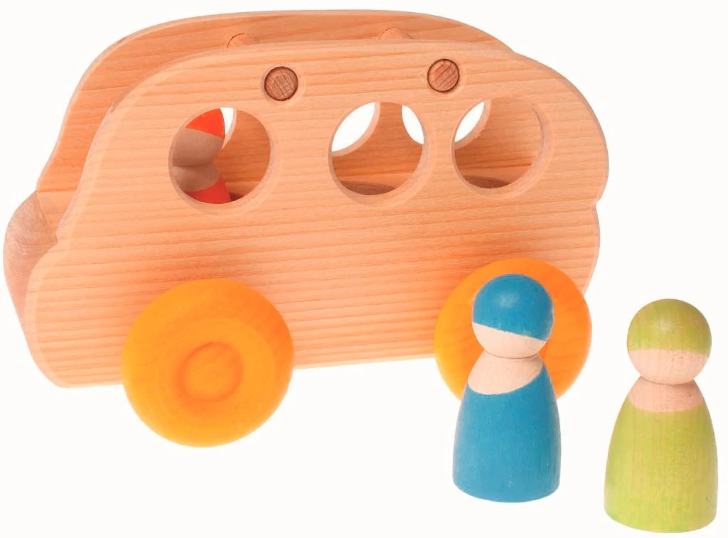 Der Omnibus kann mit der Regenbogenbande (Art. Nr. 10581/10578/10579) besetzt werden oder anderen Püppchen und los geht die Fahrt! Seine Form lässt sich gut Greifen und ist ideal für kleine Krabbelkinder. Auch schön zum Kombinieren sind die Regenbogenbrücken (10686/10684).
