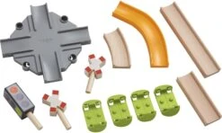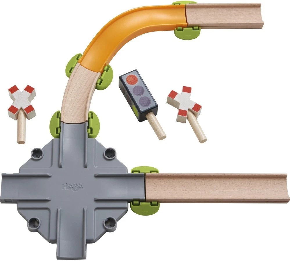 Das Tolle an den Kullerbü-Bahnen von HABA ist, dass sie durch ein neu entwickeltes Klick- und Stecksystem schon für kleinere Kinder leicht aufzubauen sind und selbst im größten Spieleifer nicht umkippen. Alle Elemente wie Säulen, Rampen, Kurven, Basen und Verbinder sind flexibel miteinander kombinierbar. Beim Ergänzungsset Straßenkreuzung bringt eine Straßenkreuzung mit Ampel, Verkehrszeichen, Kurven und Wellenkurve sowie mehreren Geraden jede Menge Abwechslung ins Kullerspiel. Die grünen Bodenverbinder halten dabei alle Bahnstrecken stabil zusammen und sorgen für extralanges Kullervergnügen. So ist das Ergänzungsset Straßenkreuzung eine prima Erweiterung für jede Kullerbü-Spielbahn!