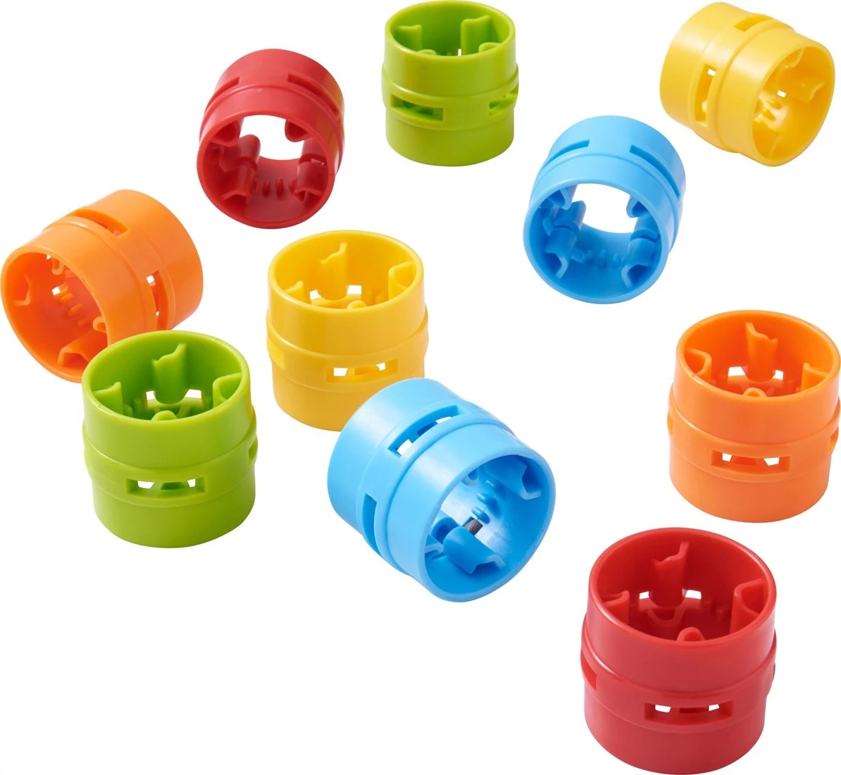 HABA Kullerbü – Ergänzungsset Verbindungsmanschetten. In der Kullerbü-Spielwelt heißt es also: Langeweile? Fehlanzeige! Wir wünschen allen Kullerbü-Baumeistern viel Spaß!