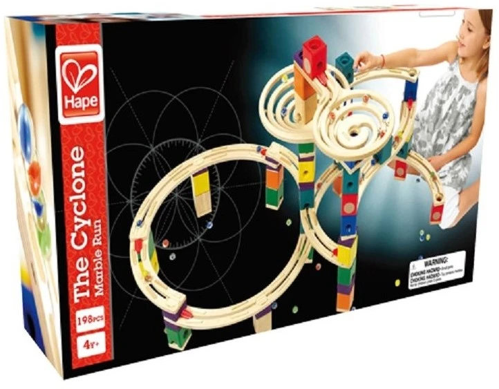 Hape E6008 – The Cyclone, Quadrilla Kugelbahn, Konstruktionsspielzeug, großes und vielfältiges Set, 198 teilig, aus Holz, ab 4 Jahren, mehrfarbig