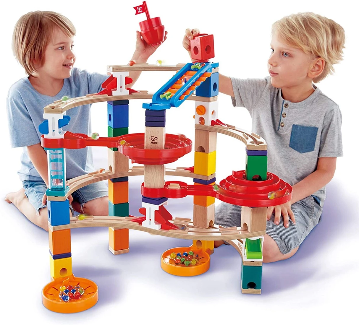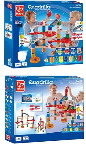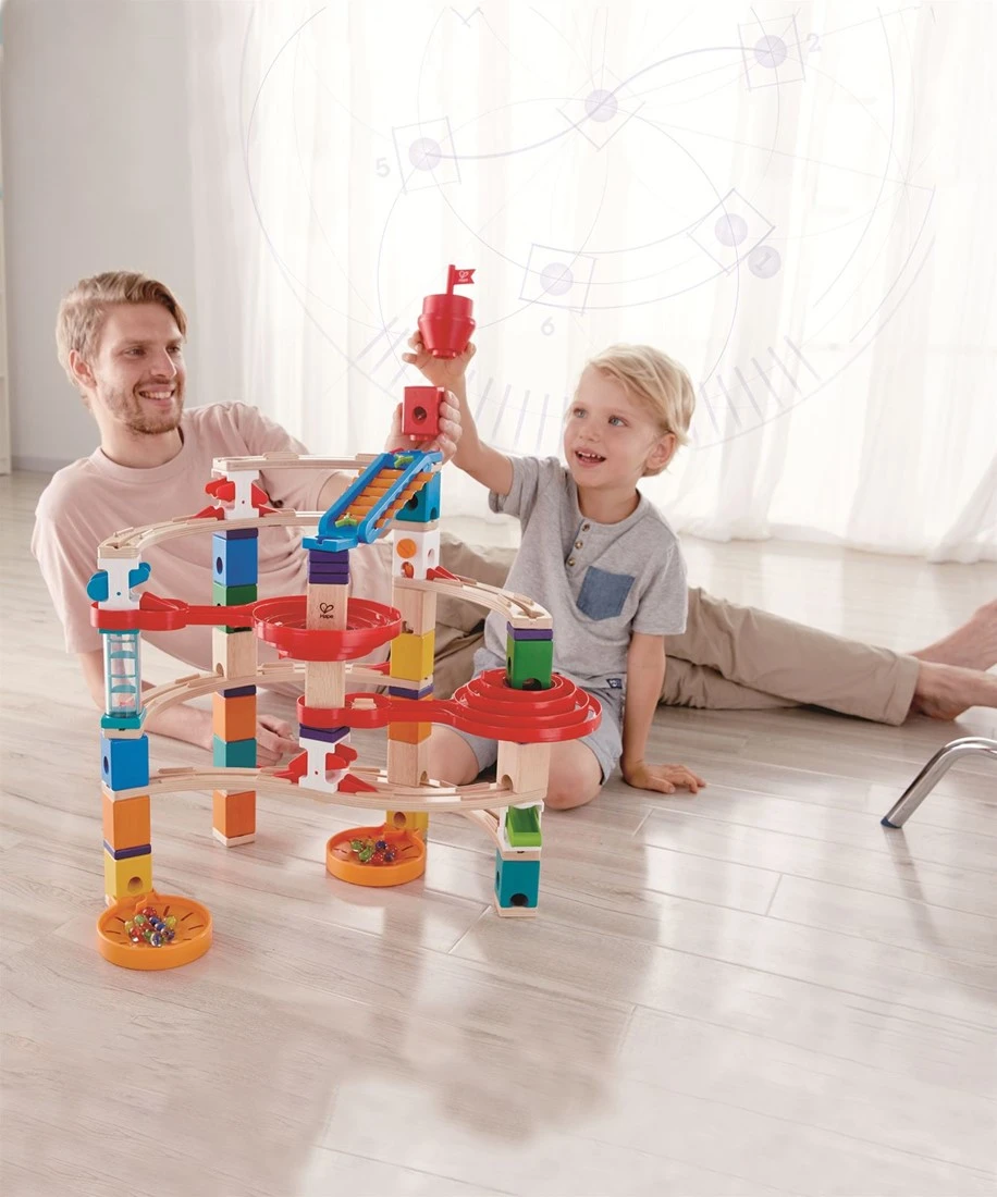 Hape E6024 – Super-Spiralburg, Quadrilla Kugelbahn, Konstruktionsspielzeug mit umfangreichem Zubehör, 129 teilig, aus Holz, ab 4 Jahren, mehrfarbig
