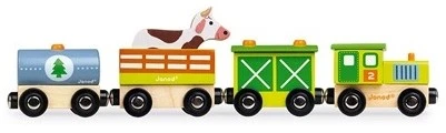 Janod – Set Bauernhof-Zug Story – 5 Holzfiguren – Spielzeug für fantasievolles Spielen – Bauernhoftiere mit Fahrzeugen – Kompatibel mit den auf dem Markt erhältlichen Schienen – Ab 3 Jahren, J08578