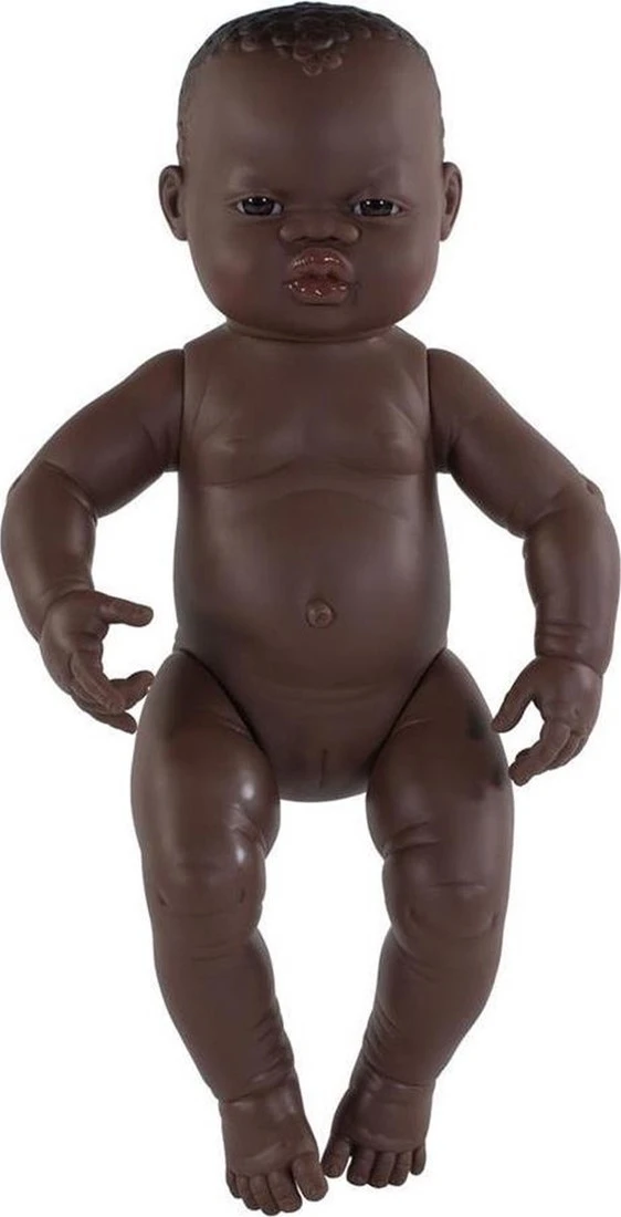 Miniland Poppen: BABYPOP AFRIKAANS MEISJE 40cm, met vanillegeur, waterdicht, anatomisch correct, in vinyl. Made in Spain, 10m+