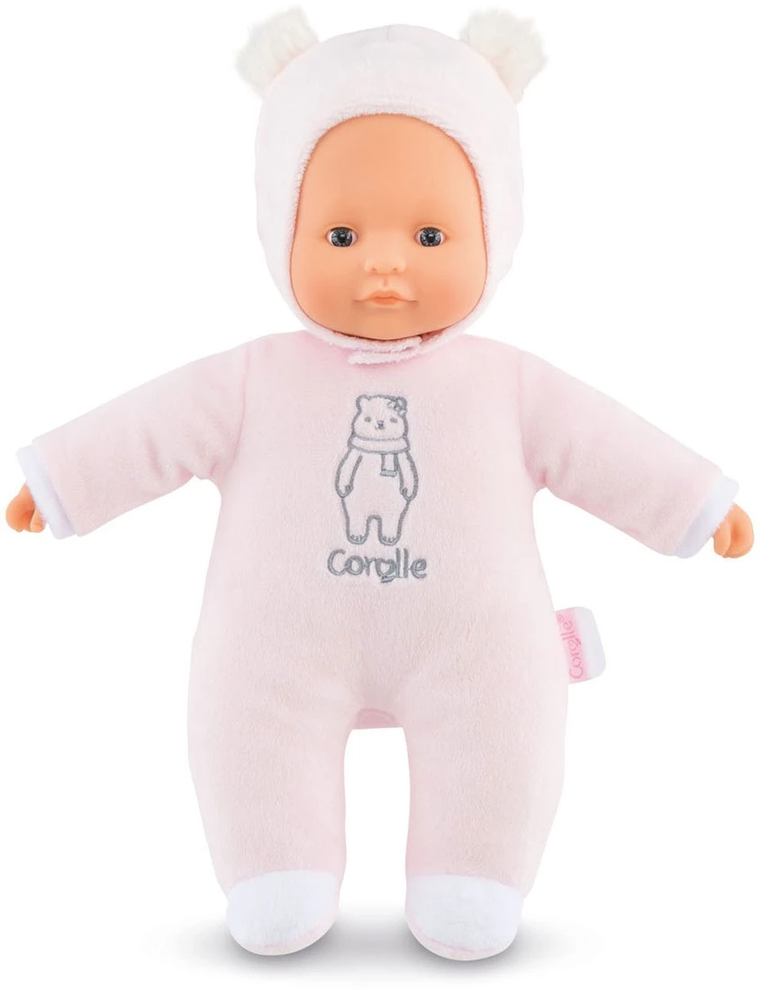 Mon Doudou Corolle Sweetheart / rosa Bär / Weichkörperpuppe mit Kapuze / Namensetikett / Vanilleduft / 30cm / Für Kinder ab 9 Monaten geeignet