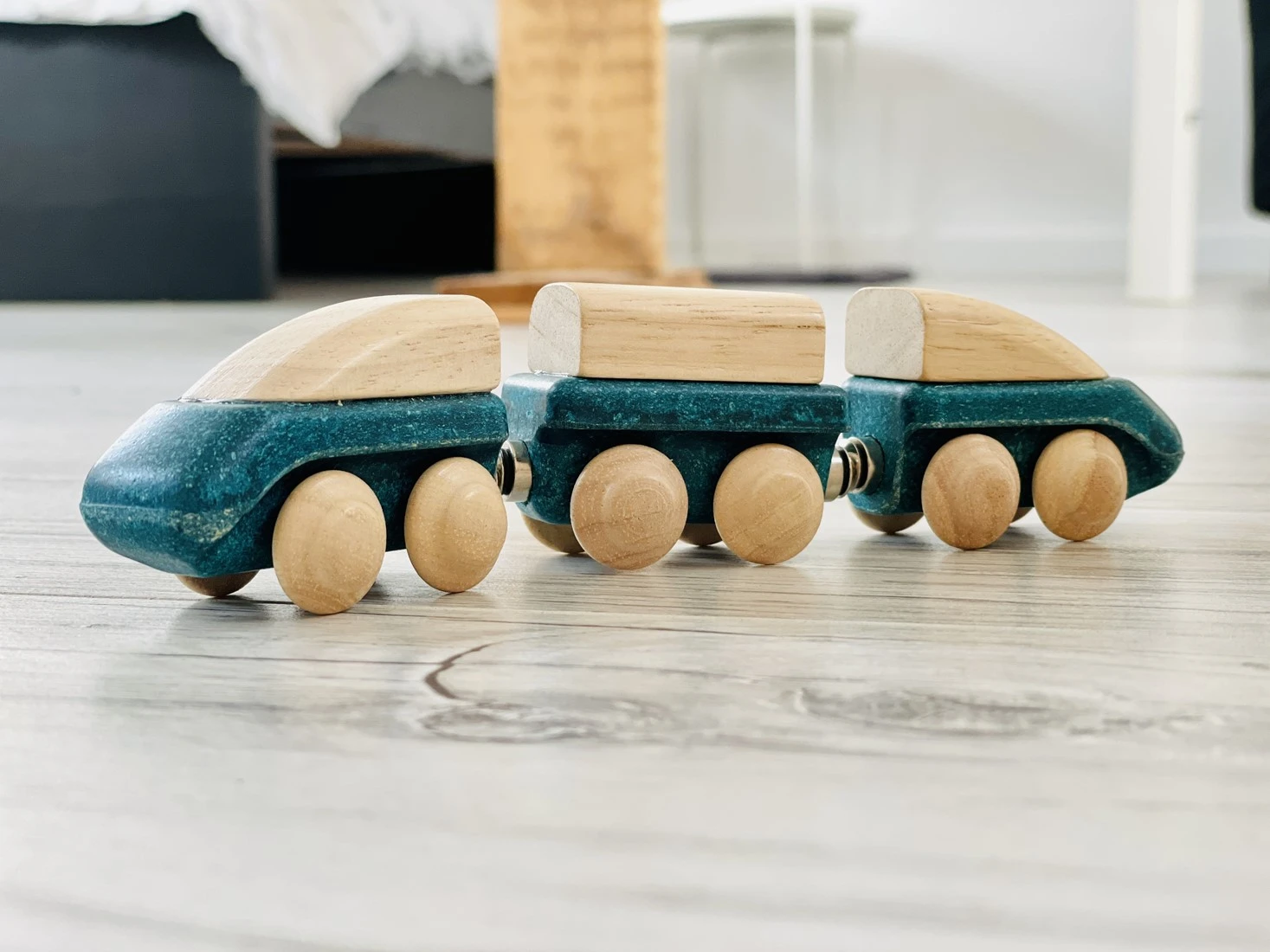 Tschu-tschu! Die Hybrid-Eisenbahn ist eine elektrische Ergänzung zu jedem Eisenbahnset oder Transportspiel. Mit den Magneten können die Kinder die Züge miteinander verbinden und so ein dynamisches Erlebnis schaffen. Die Kombination aus Massivholz und PlanWood verleiht diesem Set eine einzigartige Haptik, so dass Kinder ihre sensorischen und feinmotorischen Fähigkeiten verbessern können. Kompatibel mit dem Road & Rail Set von PlanToys. Empfohlenes Alter: Ab 3 Jahren.