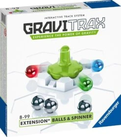 Sechs neue Kugeln für die GraviTrax Bahn und einen Startstein bringt diese Erweiterung. Mit dem Spinner können bis zu sechs Kugeln auf einmal gestartet werden. Durch leichtes Drehen des grünen Teil des Steines werden die Kugeln auf ein Wettrennen in der interaktiven Kugelbahnwelt geschickt. Kombiniert mit einem GraviTrax Starter-Set können somit dreimal so viele Kugeln wie zuvor gleichzeitig gestartet werden. Was für spannende Kreuzungen werden dabei wohl entstehen?