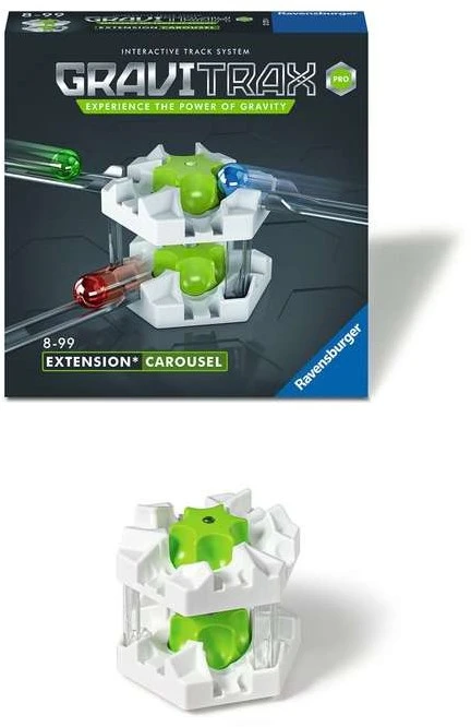Vielfalt erfahren! Das Carousel ist ein wahres Multitalent: Über mehrere Ein- und Ausgänge werden zwei Ebenen miteinander verbunden und der Stein kann während eines Durchlaufs mehrmals genutzt werden. Hineinrollende Kugeln können entweder im Carousel Platz nehmen oder dieses starten lassen. Ist das Carousel einmal in Fahrt, werden alle geparkten Kugeln auf die Bahn geschickt. Wie häufig können die Kugeln bei einem Durchgang mit den Carousel fahren?