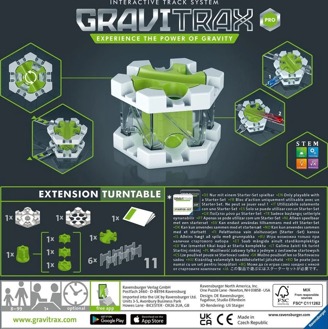Bei GraviTrax hat der Bauspaß freie Bahn. Das GraviTrax Kugelbahnsystem kann durch Erweiterungen unendlich vergrößert werden, was grenzenlosen Bau- und Spielspaß garantiert. Durch das freie Konzipieren der Kugelbahnen und dem Erforschen des Roll- und Flugverhaltens der Kugeln wird das Verständnis für Wissenschaft geschärft und die Schwerkraft hautnah erlebbar gemacht. Das STEM-Zeichen auf unseren Produkten signalisiert eine Spiele-Kategorie, mit der Wissenschaft spielend erlebt wird. STEM (Science, Technology, Engineering, Mathematics) entspricht dem deutschen MINT (Mathematik, Informatik, Naturwissenschaft, Technik).